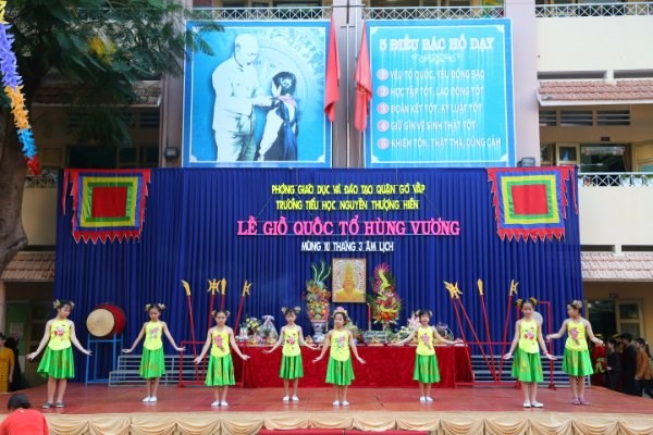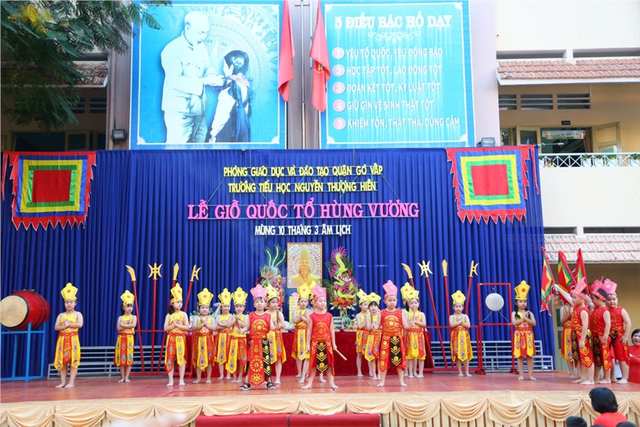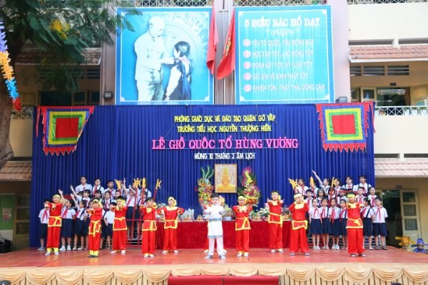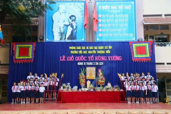 Hòa chung không khí cả nước hướng về ngày quốc tổ Hùng Vương – Mùng 10/3 AL và giáo dục cho các em học sinh truyền thống uống nước nhớ nguồn, hôm nay trường TH Nguyễn Thượng Hiền long trọng tổ chức lễ dâng hương Kỷ niệm ngày giỗ tổ Hùng Vương Mùng 10/3 AL và liên hoan sử ca học đường năm 2021.