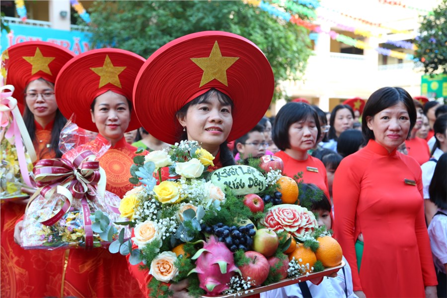 Tiết mục "Nổi trống lên các bạn ơi!" của khối 1
